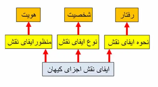 برای مثال: یک آموزگار دارای شخصیتی اجتماعی است که نوع حضور او را در اجتماع نشان می دهد و به عنوان یک آموزگار دارای شخصیت مشخصی می باشد. نحوه ایفای نقش چنین شخصیتی در رفتار او که همانا تدریس باشد، تعریف می شود. اما منظور از چنین رفتار و حضور چنین شخصیتی با سواد شدن انسان ها و… می باشد. به عبارتی: