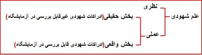 – بخش واقعیتی: بخشی از تجارب شهودی که می تواند در عمل به مورد اجرا و آزمایش گذاشته شود و واقعیت آن را با ملاک ها و معیار های علمی مشاهده نمود و آن نتایج را مورد بحث و بررسی تخصصی علمی قرار داد. مانند بررسی تاثیر میدان های شعوری بر روی انسان، گیاه و حیوان، سلول، ملکول، میکروارگانیزم.