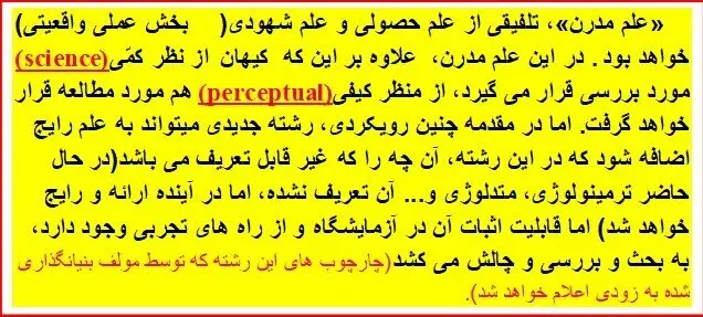 نکته: تحقیقات پیش رو از منظر عرفان، در راستای همسو نمودن و تلفیق«علم حصولی» و «علم شهودی »بخش عملی واقعیتی علم شهودی بوده تا بتوان به این وسیله تفسیر کامل تری برای کیهان و پشت پرده آن پیدا نمود. در واقع به اعتقاد نگارنده: