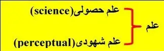 ۱– علم حصولی(science): نتیجه بررسی رابطه کمّی(quantity) بین اجزای کیهان و پیدا کردن اعداد و ارقام ناشی از این واقعیت ها و تبدیل داده های به دست آمده از مشاهدات و آزمایشات انجام شده و…، همچنین تبدیل آن ها به اطلاعات و معلومات کاربردی حاصل شده است. دسترسی به علم حصولی همان گونه که از اسم آن پیداست از طریق حصول و تحصیل از راه یادگیری صورت می گیرد. اما: